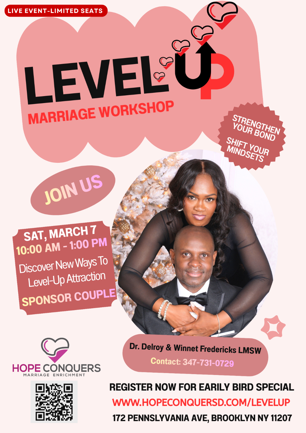Dr. Fredericks is the founder and president of Hope Conquers Marriage Enrichment, LLC. The mission is three-fold.