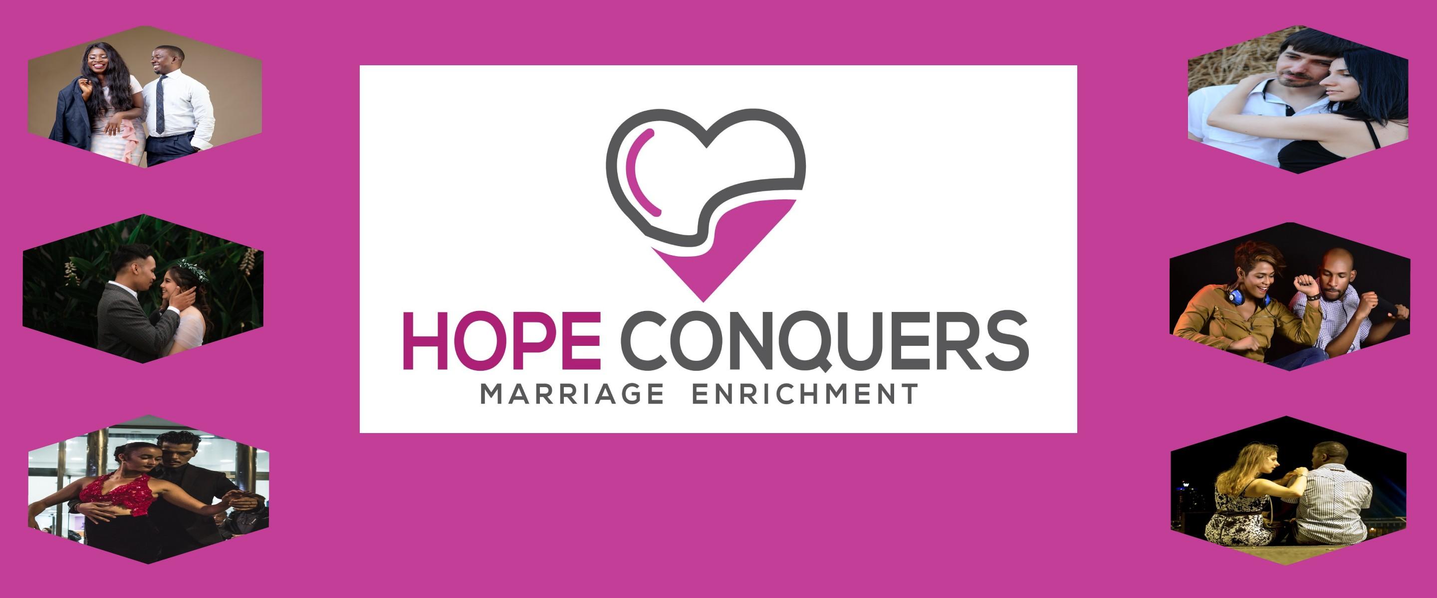 HOPE CONQUERS MARRIAGE ENRICHMENT INSTITUTE. Interactive LIVE trainings, 1st Sun every month @ 8pm EST. 3rd Wed every month @ 8:00 pm EST. Group Coaching Accountability Calls. Are you ready to take your marriage to the next level? Enroll now FREE trial (silver or gold NEW members ONLY).